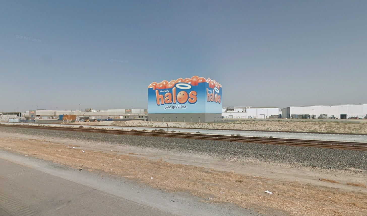 Not from the article, but look at this. They made a building in the shape of a giant box of oranges. Look upon my works ye mighty, much?
